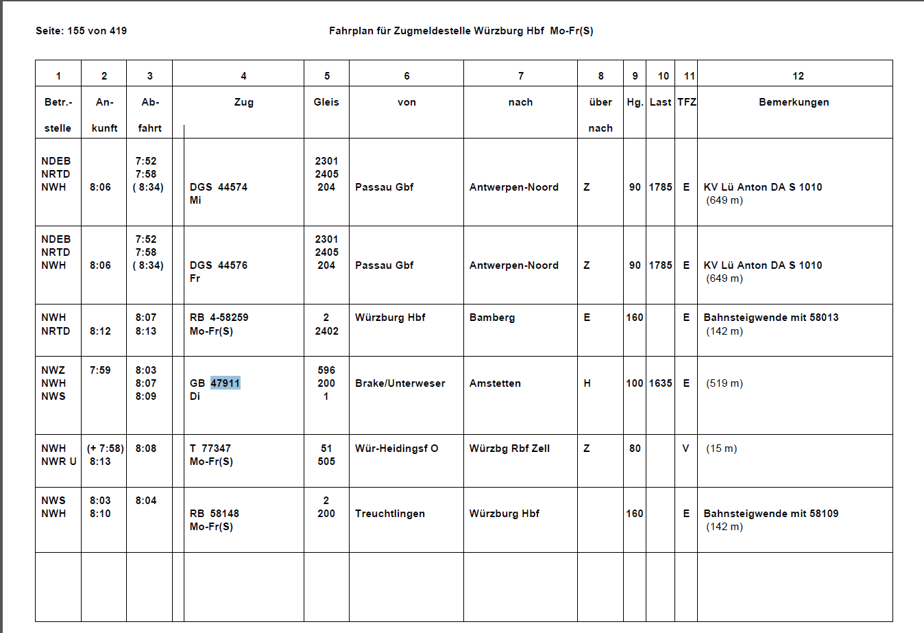 Und immer dran denken: Der Fahrplan für die Gz ist aus dem I. Quartal 2016. Was heute ist, ist uninteressant.