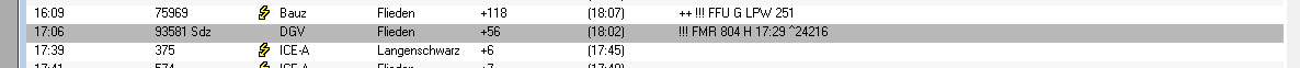 • Besondere Kennzeichnung von Güterzügen mit Halt in Rohrbach in den Bemerkungen (!!). Das gleiche gilt für zwei Güterzüge aus Richtung Gemünden, die vor einer entgegenkommenden RB in den Rbf sollen.